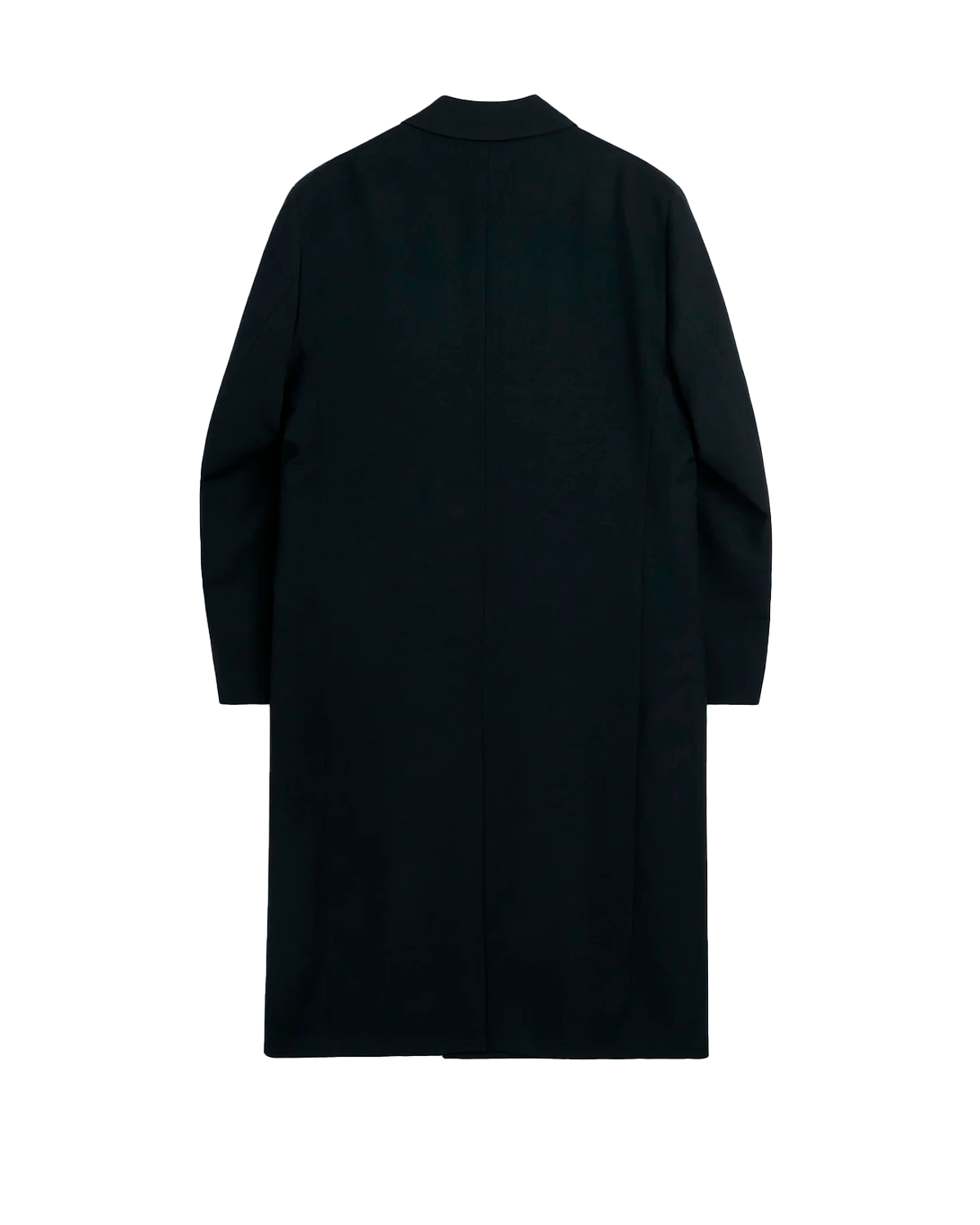Let dobbeltradet frakke i en raffineret sort tone. Skåret i et luftigt, teknisk materiale med blød struktur og elegant fald. En moderne fortolkning af den klassiske overfrakke – perfekt til overgangssæsoner.